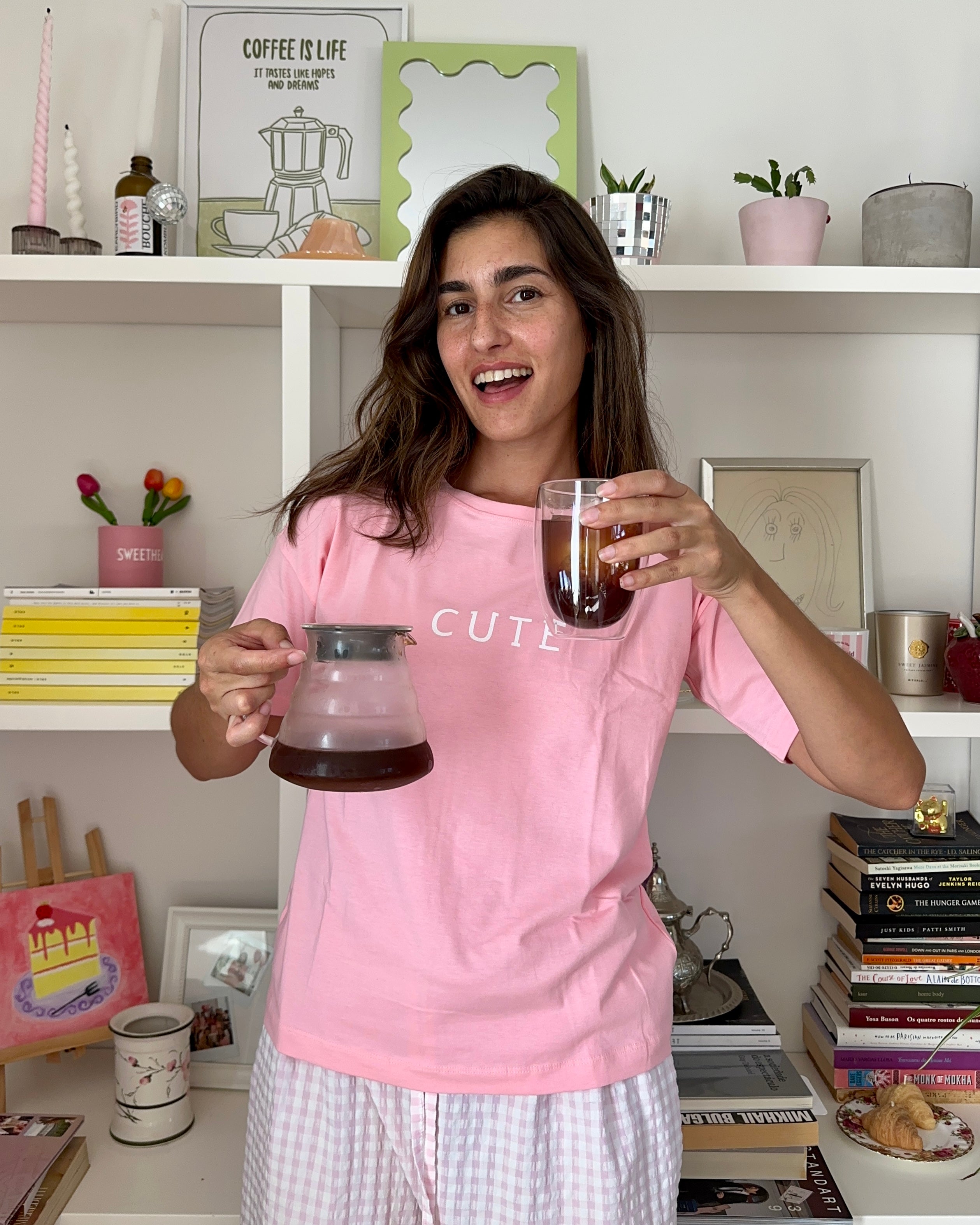 - Add the coffee and place it over a cup or pitcher
